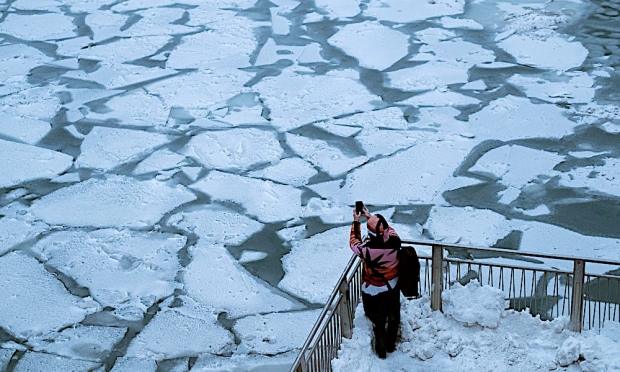 Keadaan Sungai Chicago yang separuh beku